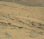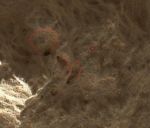 This reminds me of insect activity here on earth. Looks like some little critter has been digging. I've outlined the tailings from the holes and circled what could be an insect.
