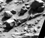 in the last link you gave, I think thats the same 'C' thats on the Moon rock in the allegedly fake apollo moon landing shots. Well, it looks very similar anyway. Some people say it is a stage prop marking. On the second large stone up from bottom right corner going diagonally left.