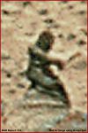 I see what you mean. I could interpret anything to be a face but a Human face is different. I just put these two examples up because I believe that they are the best examples I have seen (so far) Here is more of a close up of the face I see in the big rock (or whatever it is) from SPIRIT SOL 87. It "appears" to be a human peering out of a suit of some type, only his eyes, forehead and part of his nose are visible.