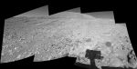 However, if you look at where it is in relation to the Rover, it looks to me as if it could be a RAT effort on the rock. Normally, the RAT makes a single roughly circular patch but this isn't so I dont know if it is caused by that. The "shading" around the outside makes it look like that might be sandings from the grinder. I dont see it as anything off the surface of the rock, but maybe it is. Take a look at other RAT places whre they have done sampling and smoothing and see if you think this is what it might be.