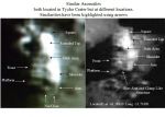 Of the 2 or 3 anomalies I am waiting to post its the ones appearing on the following 2 slides that I seem to return to again and again. I guess the main reason for this is that 2 of them are in such close proximity to one another. The 2 'craft' like anomalies appear (to me) to show the front view of one and the side view of another (highlighted in red). In addition to this they both sit close to 2 previously posted anomalies (in yellow). The 3rd and 4th examples of the craft-like anomaly are located elsewhere in Tycho crater. Please look at the original source for the best images.