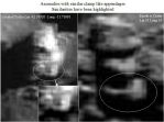 In Moon Statue posted by Marsrocks we see a very interesting youtube video showing what appears to be a giant statue reaching up fromthe surface of the moon. As I replied to him I am really interested to see these type of anomalies as I firmly believe there are statue like anomalies on the moon. In the attached slide there are 2 similar statue like structures both having a face with eyes nose and a mouth. Both lie within Tycho crater and are similar in height. Although they are not anywhere as big as the statue in the video they still reach 20 - 25 meters in height. Please note that the anomaly to the right has been posted before on the Concentrated Anomalies thread. The one to the left is a new find.