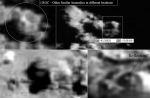 With many of the new LRO images changing daily now - I try to make frequent checks back to see whether any of the anomalies I have identified have changed. I am pleased to say that 3 in particular can still be seen on the new website (Originally posted 9th August 2012) although the quality seems to be a sum what lower grade. I have tinted the magnified versions in the top row. Observations always welcome.