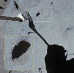 As a distraction from scanning the LRO images I have been looking through the internet trying to find anomalies in Apollo photos or films. Im then trying to find similar examples from my collection that may explain or add weight to their actual existence. I have found a photo although I am not familiar with it which was taken by an astronaut on the surface. It is top left on the slide below. The originalis way off in the distance. (I hope it hasnt already proven to be a fake)