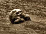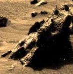 The "Alien or Grey" That Feerdinand referrs to in the photograph appears to be fused to the pedistal and does not exhibit the same features of other representations of Greys that I have seen. EG: Eyewitness descriptions. It does appear to be part of the "Rock" or whatever material that really is, and also appears to be "stylized" as it has features like a carving or a statue. Due to the fact that the entire area is filled with crumbling sculpture, including the previous and later SOL's on this very hilltop leads me to believe that it is part of some type of religious or other temple type complex that has been destroyed.