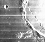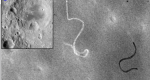 I have reviewed 300 fotos of LRO 1965 and the triangular marks are repeated in 9 fotos in the same display. Are marks different to the image, but the semicirculars colonies have patterns which deffine constant distances among the domes, it look likes prefabricated units linked with tunnels or passages, The distribution of groups is arquitectural, evidence of a different rank or activity among groups of inhabitants, The economy of routes linking small colonies, the curves of linear domes is for bennefit of the same lavel curves of terrain, Then you see straights displays wich most be of a different time of erection. In the Tsiovkolskiy Crater there are the presence of many of these mining activities.. What kind of mineral is present?