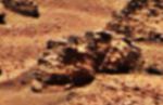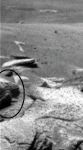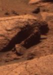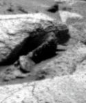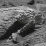 I believe major pieces of these crashed craft are still there, lying on the surface of Mars, and that their impact created these huge craters and shattered these hulls over many acres if not miles of debris .. a regular Roswell revisited. As for rdunk's lizard-man, it need be noted that all major cultures of early history, report it was these serpent-lords who brought them all their science and culture, usually after a great flood. And these were their sky-gods of old. So, there is a high probability that these great ships were piloted and manned or crewed by some such entities who were identified with the reptile personification or insignia. One seeming contradiction however, is the thickness of the stone to the left-rear, as it is 2-3 ft in thickness, thus the lizard-mans rock should be of the same thickness? Then again, there is the outline , and the ' shield' to contend with in the equasion. I cannot ' prove ' this either way, but I tend to believe there is indeed ' something ' human-shaped as present in the picture as rdunk contends. I hope this has been an interesting and fair evaluation of this strange phenomena for now, perchance a future deduction or find will make it all the more clearer to us. -Morbius