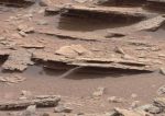 To me, this is showing standing water beneath these shale-like ledges. I can see the reflection - just like you can when you go for a walk beside the river here on Earth. If you had not been TOLD there was no water currently on Mars, wouldn't you just assume these were puddles of water? It suddenly came into mind that this is what we are being shown here.