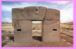 I find the writing/symbolism of the plaque itself is strangely akin to the Gate of the Sun in stylizational format, The giant 15 ton monolith is found high in the alto-plano of the Andes in Peru ( attached ).