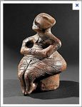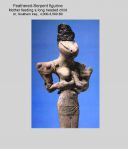 Another depiction (3) is from the Sumerian City of Ur ( Iraq ), from the Al-Abaid period, now in the British Museum and dated to 4,000-3,500 BC. This version is replete with a feather (<flying/bird ) headress, although, after 6,000 years, she seems to be having a bad hair, or ruffled-feathers, day. As her 'child' suggests, he too is a future Serpent-Lord of this Lineage. And his elongated head cannot but suggest this is taken after his serpent-mothers same.