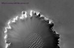 There are many things wrong with these pictures, but first let's look at the wave form. Firstly, it is abnormally rough compared to the size of crater and on the other hand, it is not compatible with expected wind turbulence formed by craters walls. Each dunes are approximately fifty meters in diameter which is extremely unlikely under natural conditions. We should see depression in the sand next to the crater walls. (the torque generated by wind)