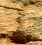 The official explanation is that the object has been polished by the fine dust blowing over it, this is a poor explanation as other features surrounding it would have the same polishing effect, also the the scene looks to of been edited, the shadow is wrong, and the base looks altered together.