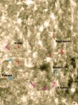 This cutout is the top part of the Kuilper, Crater photo. It shows a great many structures and carved faces and statues. I limited the tag words and just added some arrows to point out some anomalies so as not to cover up anything interesting.