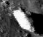 WARNING. These images are blown up until the pixels are showing, then I have messed about with that image, so what you see may not be anything like what is actually there. What I use this technique for is to know when it is worth the effort of changing brightness and contrast and possibly go looking for other images of the same area. Do not run off and think that this is what is actually there on the ground because it isn't. It can only give indications of differences in greyscale values of the pixels. What this technique does is to emphrasize the differences in 'greyness' between one pixel and the next. Like turning up the 'volume' of an image and making the notes in a certain range appear louder. Sometimes this is useful to see what is in the shadows of a picture after stretching of the image has already been done.