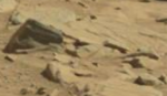 One or two of todays images are interesting. On this one, http://mars.jpl.nasa.gov/msl/multimedia/raw/?rawid=RLB_494698020EDR_F0492236RHAZ00323M_&s=1095 from Curiosity Rover I can see what looks like a small person looking up, the structures around seem to be small scale. All I've done is rotate this selection from the raw rear camera image.
