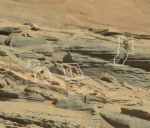 The little area below this upright shield (with vertical markings?) looks serrated (could be caused by rock at right) at the bottom and has a slightly different color than the sand or the rocks. On the left side of it the rock does not end nicely....just disappears. Could this be an entrance to underground dwellings/caves and is the shield some kind of door, put aside?