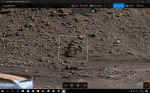 Levelwind, thanks for the b'day wishes, very keen! The "mask" seems like a raised construction, out of place compared to the little rocks elsewhere, with all kinds of branches and sticks around it. It looks very "tribal" to me. Notice the three neat round black holes (like exhausts?) on the "chin", see arrow. There are more strange things in this panorama photo. Could that be some kind of a door/entrance into the hill, at top right?